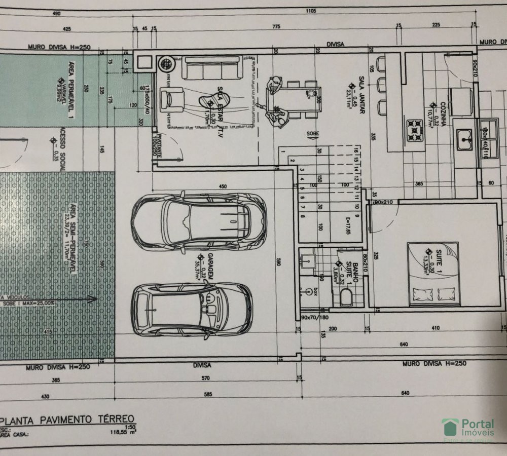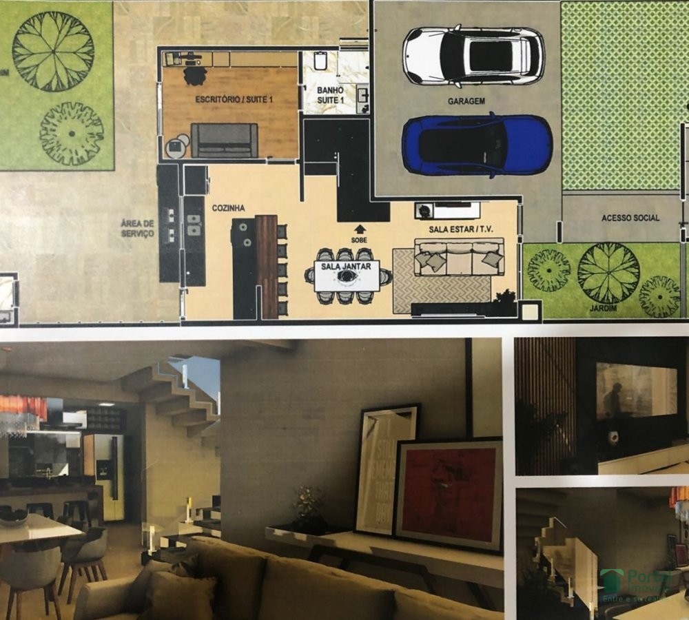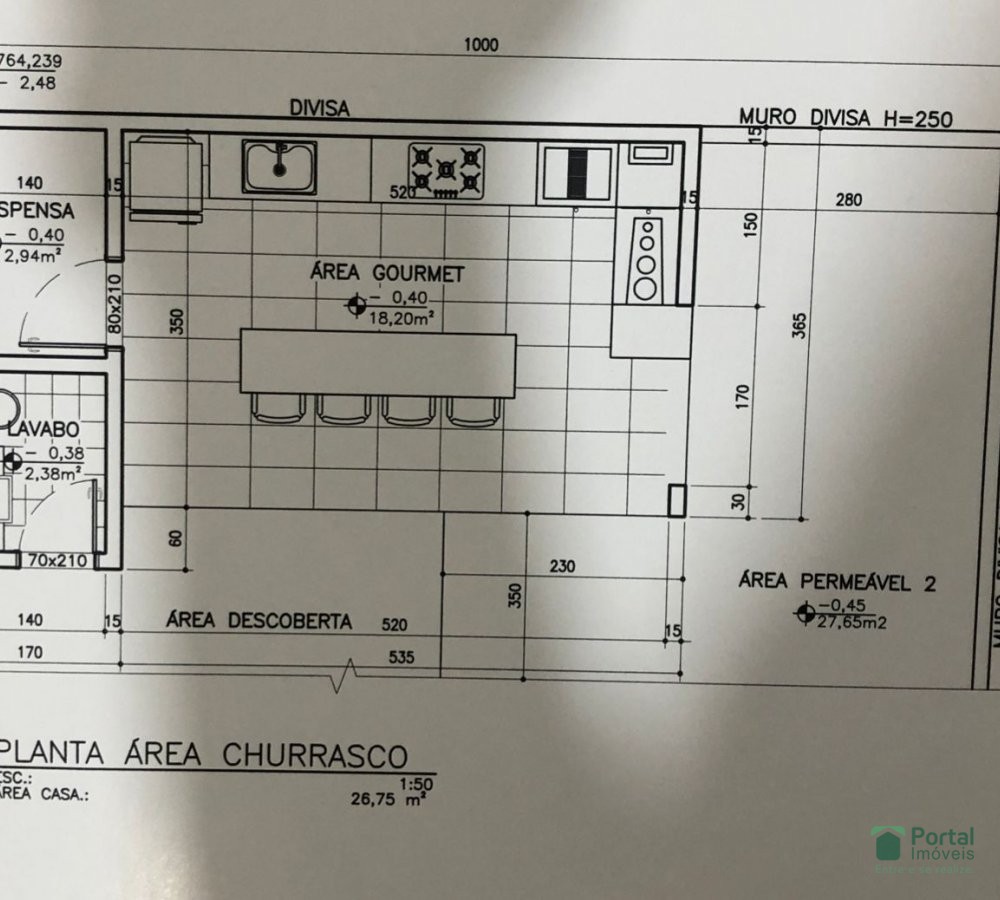 1º Sala para 02 ambientes , 04 Quartos sendo 01 suíte , cozinha com bancada, área de serviço, área gourmet com WC( lavabo)