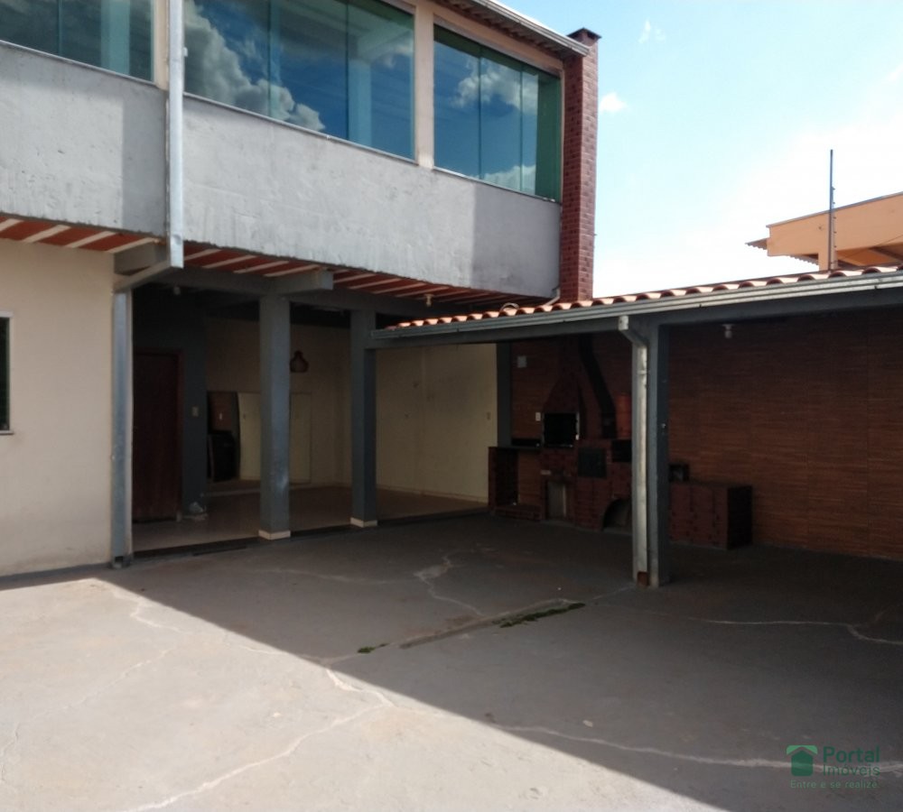 Sala, 03 quartos, 03 banhos sociais, cozinha c/ fechamento, área gourmet c/ fogão a lenha, terraço c/ área de serviço e garagem p/ 04 carros.