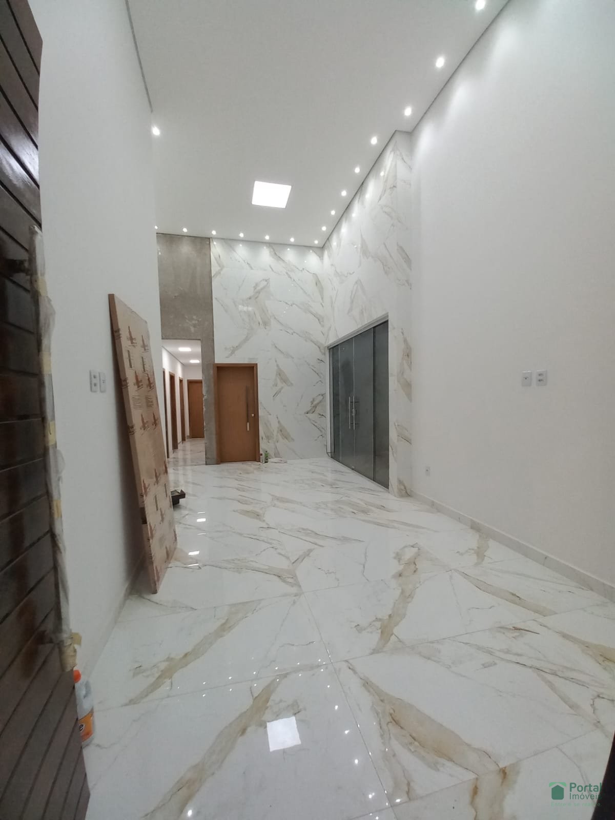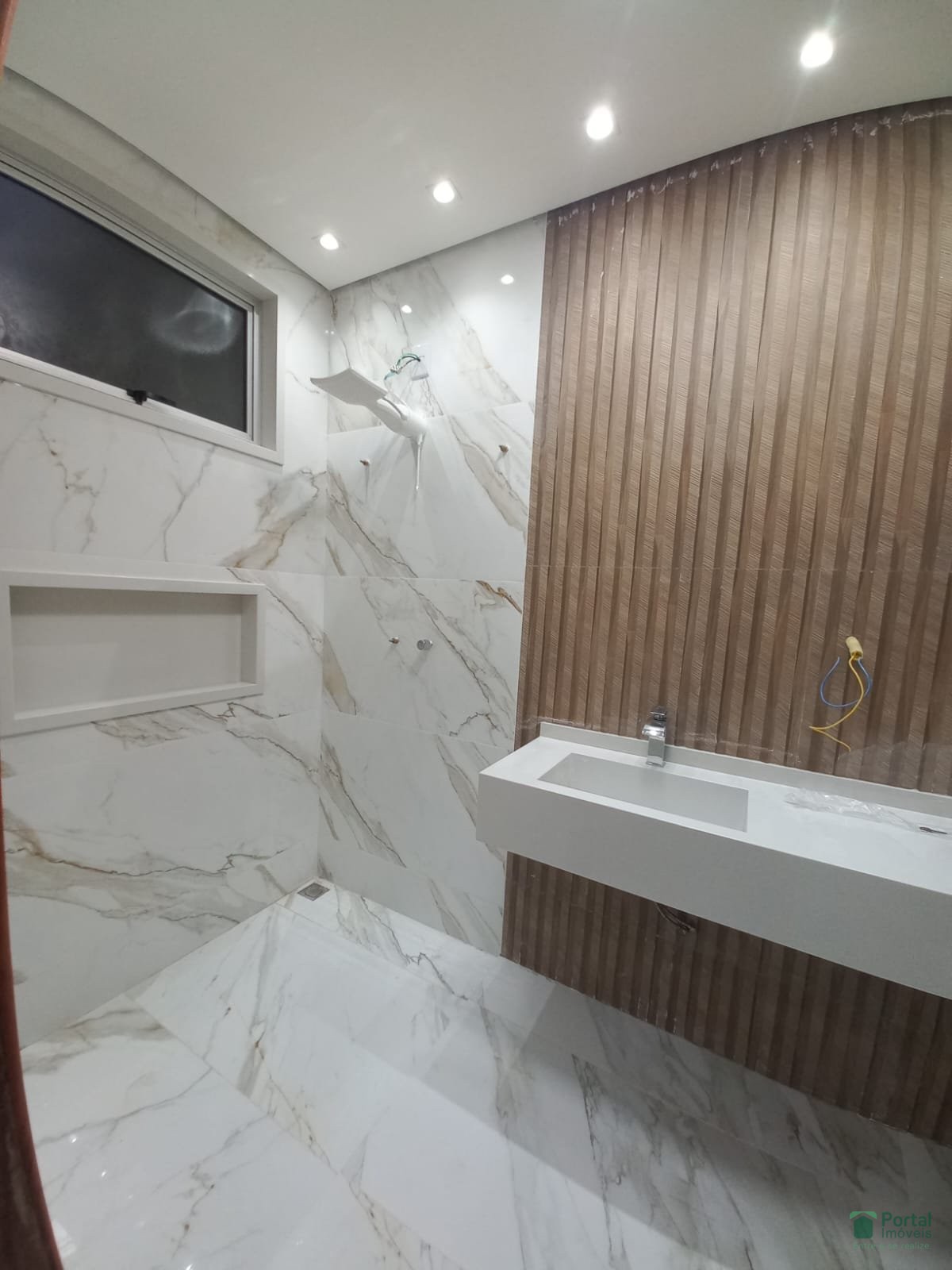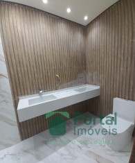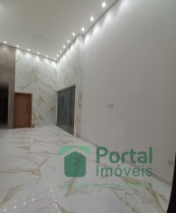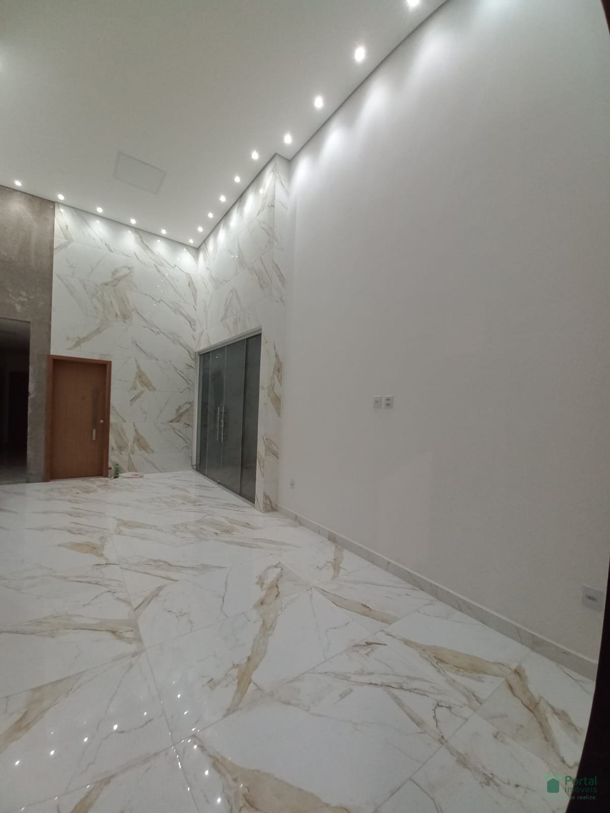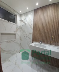Sala p/ 02 ambientes, 03 quartos sendo 01 suíte e closet, banho social, cozinha c/ bancada, área gourmet, área de serviço c/ wc e garagem p/ 03 carros.