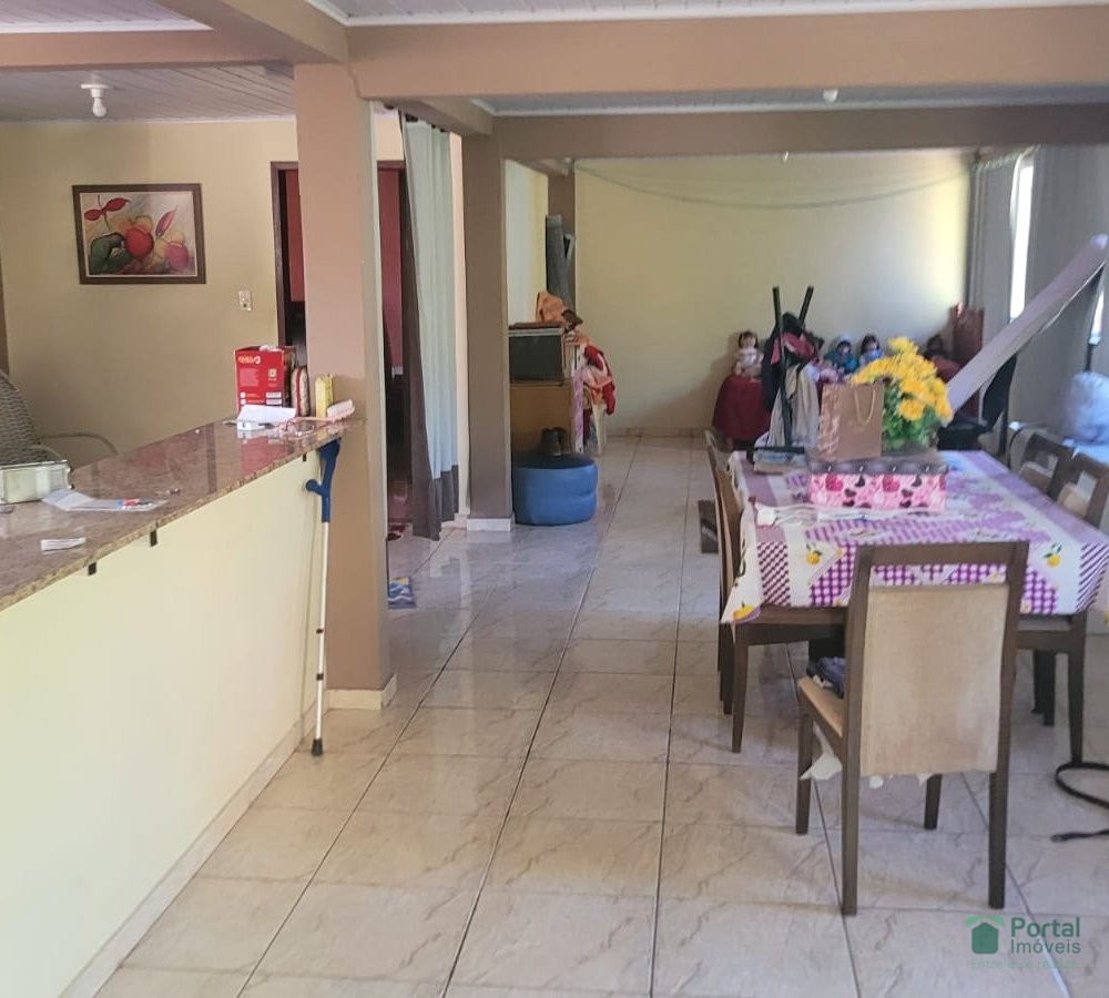 Varanda, sala, copa, 05 quartos sendo 01 suite, cozinha, terraço com área de serviço e sala de TV, 02 banho social, quintal,e garagem para 03 carros.