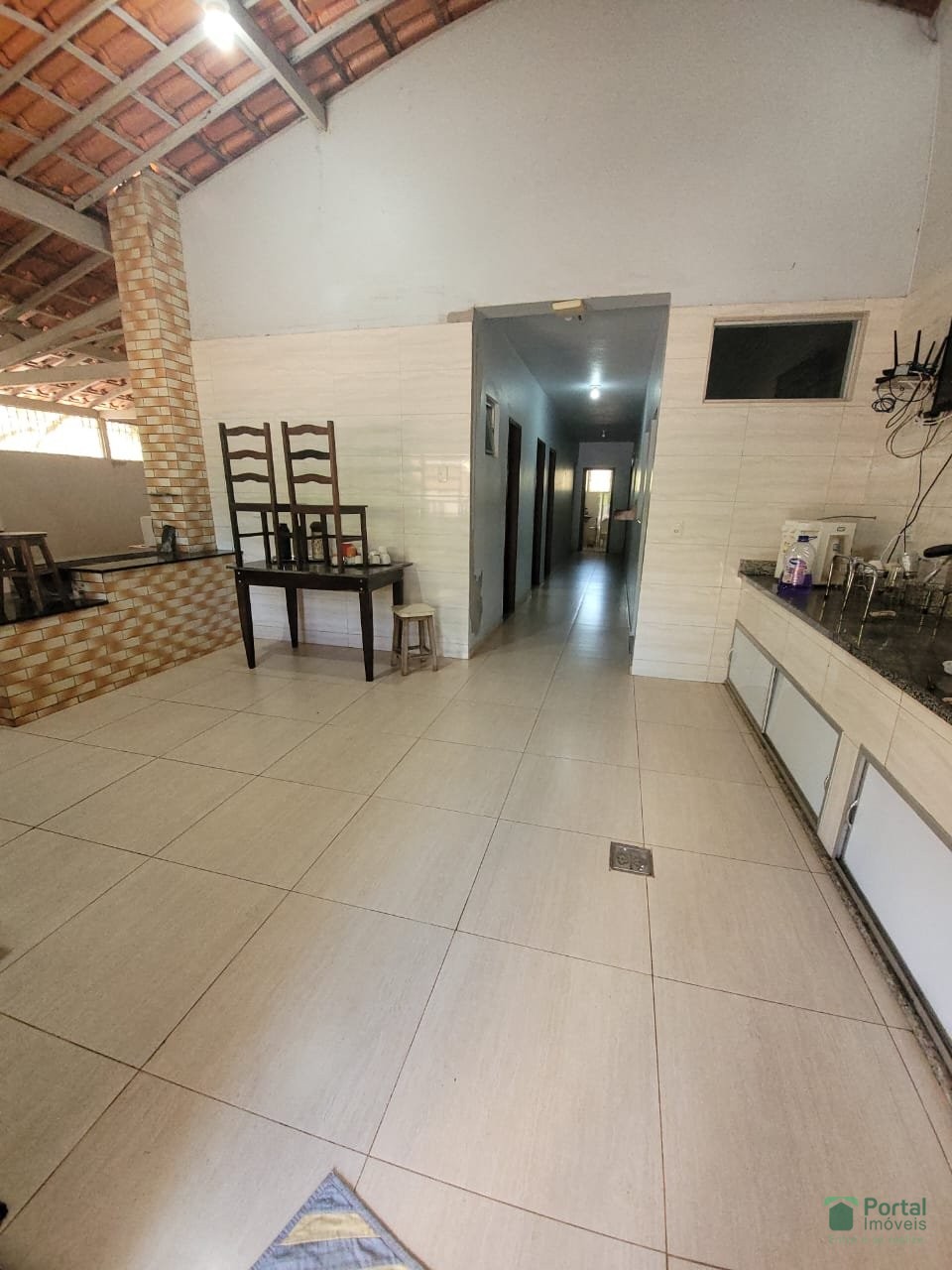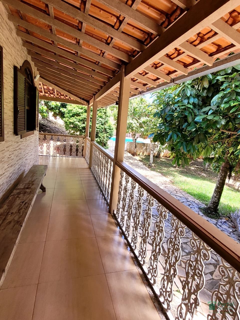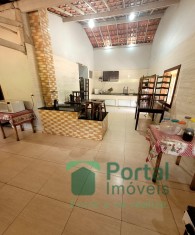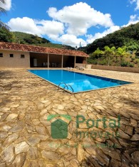 Varanda,sala de jantar para 02 ambientes ,07 quartos sendo 01 suítes ,02 banho social , cozinha com fogão a lenha ,dispensa, área goumert com churrasqueira , piscina, sauna. Casa do caseiro com sala, 03 quartos, cozinha, área de serviço,banho social, alarme.Terreno de aproximadamente